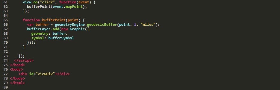 var buffer = geometryEngine.geodesicBuffer(point, 1, "miles");