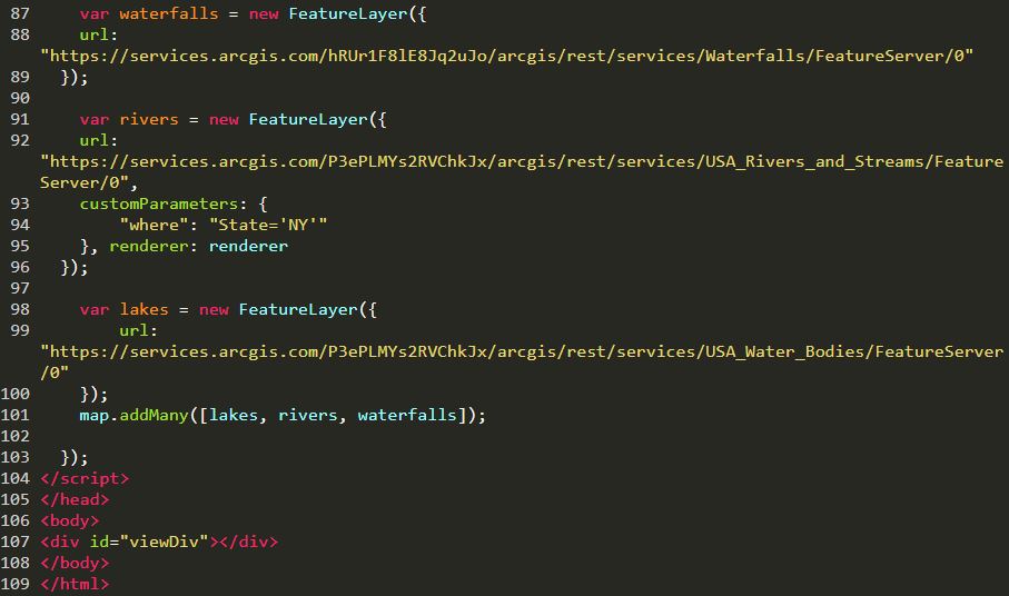 4. Lastly, we will attach the UniqueValueRenderer to the rivers FeatureLayer.